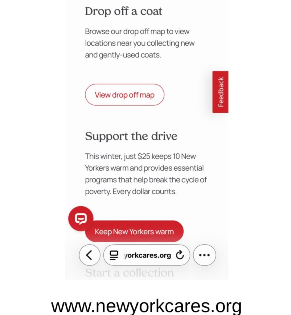Speaking of coats, consider donating to a local coat drive. One of the most active near me is New York Cares, in its 37th year of collecting and donating coats .