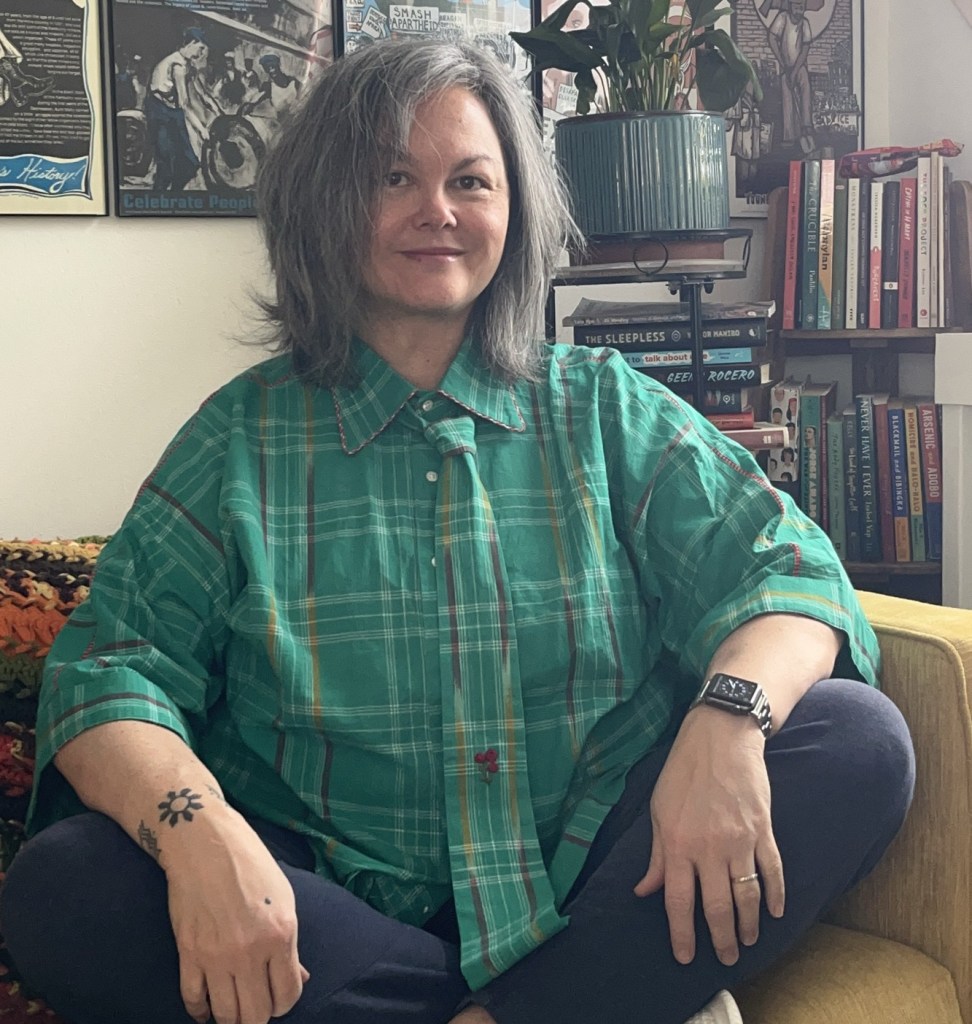 Over my secondhand (but NWT) sweatpants is a custom oversized s’cool shirt from Gul Sohrab (on insta as @gulsohrab.studio). They make striking structural pieces that are so well-tailored, yet so effortless to wear, perfect for a workday filled with movement, sitting, and stretching…