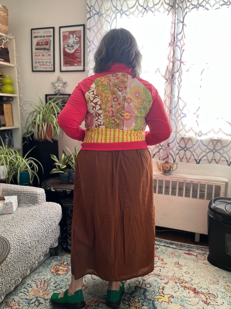 Upcycled Adidas jacket by Original Threadster, sundress by Modern Citizen.